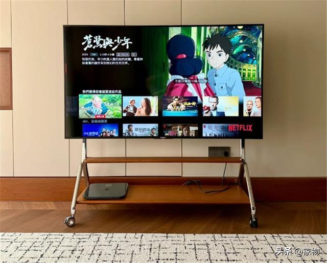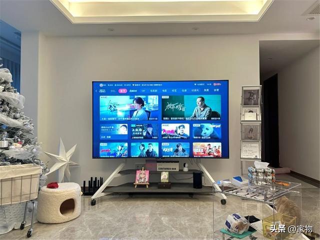 现在有很多人,都选择不做电视墙而去做电视支架,电视挂上去,想往哪儿推往哪儿推,又灵活又节约空间,尤为适合小户型。