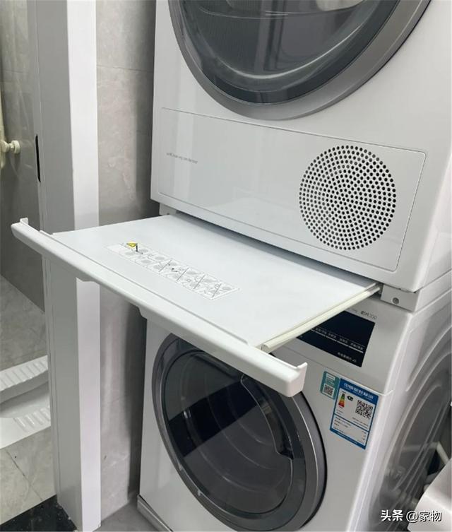 若家里买了洗衣机烘干机套装,为了更充分利用空间和使用便利性,建议在二者中间加一个洗烘置物板,既可以置物叠衣,不用的时候还可以完全收起来,不会太过占地。